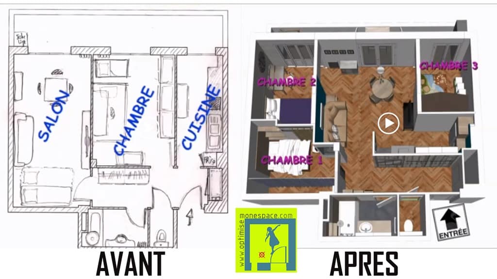– J’ai totalement transformé le T2 inconfortable de Danièle et Frédéric pour concevoir, dans le même espace, un T4 confortable.