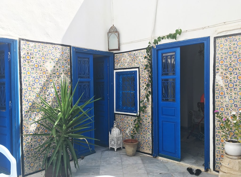 “Il faut comprendre que ces maisons étaient à l’origine, conçues pour y vivre à 3 générations”, me raconte Afef Ghannouchi, architecte et directrice de la section Design d’Espace aux Beaux-Arts de Sousse. Chaque foyer avait alors sa chambre. Parents, enfants et petits enfants cohabitaient alors, partageant patio et cuisine.