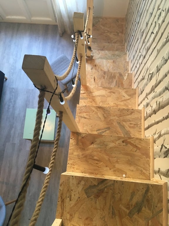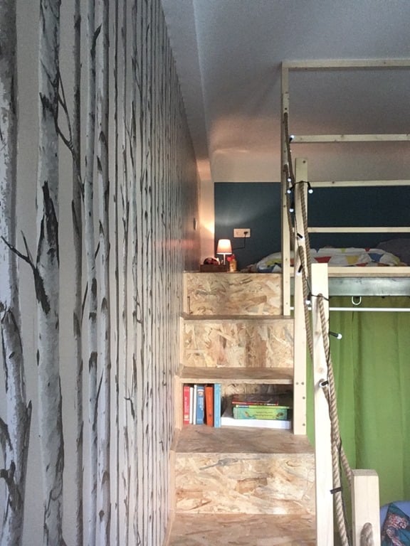 Je suis heureuse d’avoir trouver votre article car je suis sur un projet d’habitat de 22m2 pour 2 adultes et 2 enfants, sans accès à l’eau ni a l’électricité ni au gaz. Pour l’hygiène corporelle et les lessives, j’ai une solution. Pour les sanitaires : 1 toilette sèche. Pour l’absence d’électricité : matériel de camping rechargeable sur mon lieu de travail. Je cherche encore une solution sûre pour le chauffage en hiver. Mais mon plus grand challenge est l’aménagement de l’espace pour que mes enfants aient chacun leur « grotte »(c’est leur souhait) et un lieu commun en plus des zones de vie ( manger, se détendre, travailler, ranger). Je ne suis pas fan de l’OSB à cause de son esthétique mais je peux toujours le peindre. Mon budget est très minimaliste. J’apprends donc à bricoler. Votre article est une belle source d’inspiration. Avez vous un lien vers un tuto pour construire cet escalier bibliothèque ?