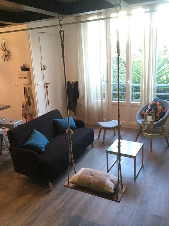 Que faut-il de plus pour un salon super attractif ? Ah oui ! je sais : une balançoire !