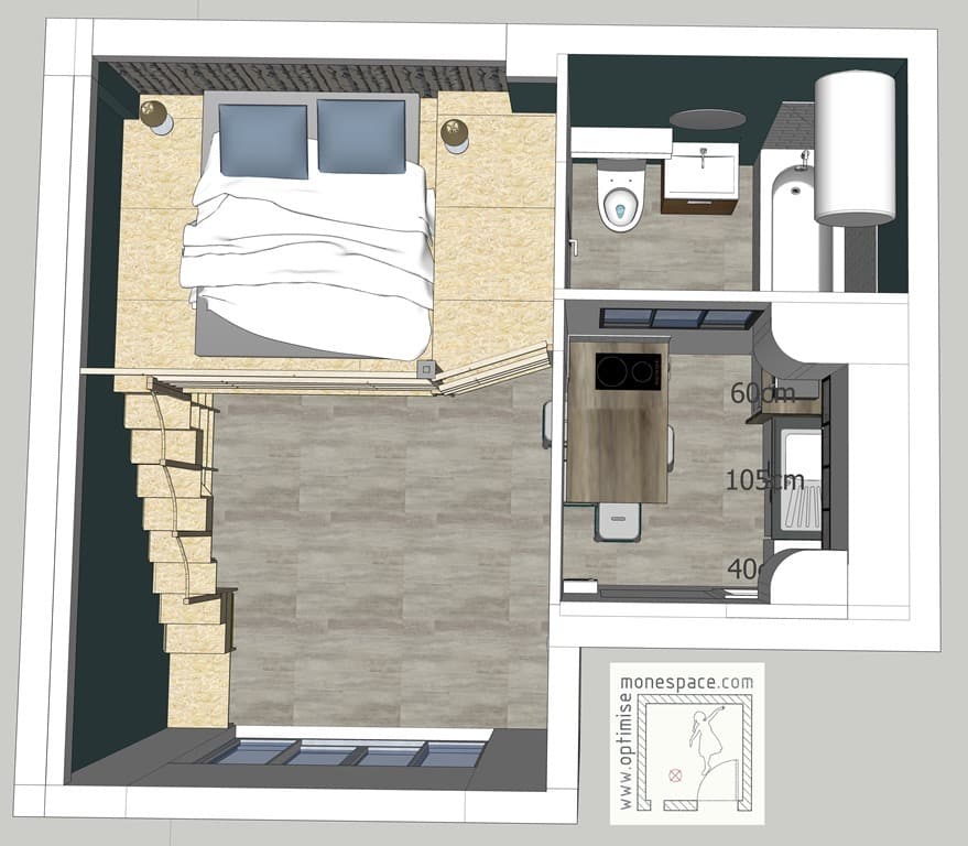 Nous vivons a 2 et un bébé dans 25m2 sur 2 niveaux.