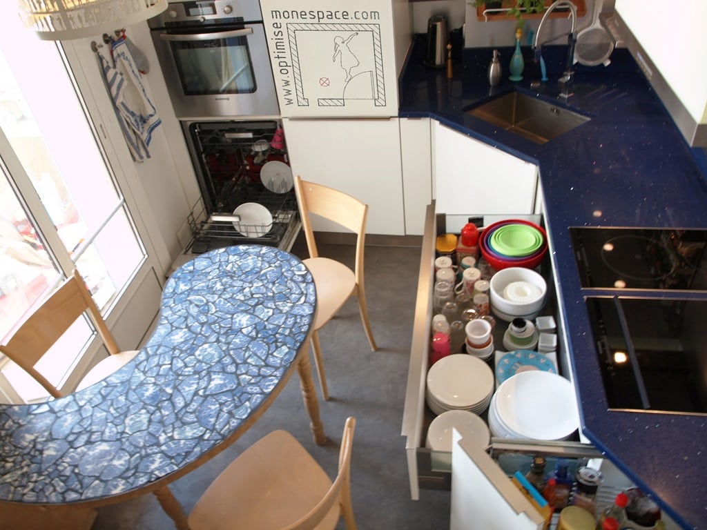 . Cet été j’ai reçu une amie dont les habitudes d’après repas m’ont contrariées : il lui fallait tout ranger, laver à un moment où je n’avais plus envie que d’une sieste (je suis une senior) Elle m’a expliqué que dans son logement elle y était obligée puisque sa cuisine et son séjour ne faisait qu’un. Moi je ferme la porte de ma cuisine et peut oublier le désordre aussi longtemps que ça me chante.