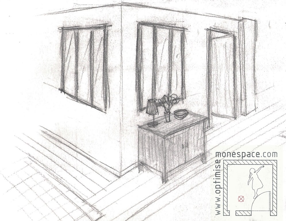 En fait, seules 2 fenêtres offrent de la lumière : celle du salon , et celle de la chambre d’amis/bureau … qui profite véritablement à la moitié de la pièce