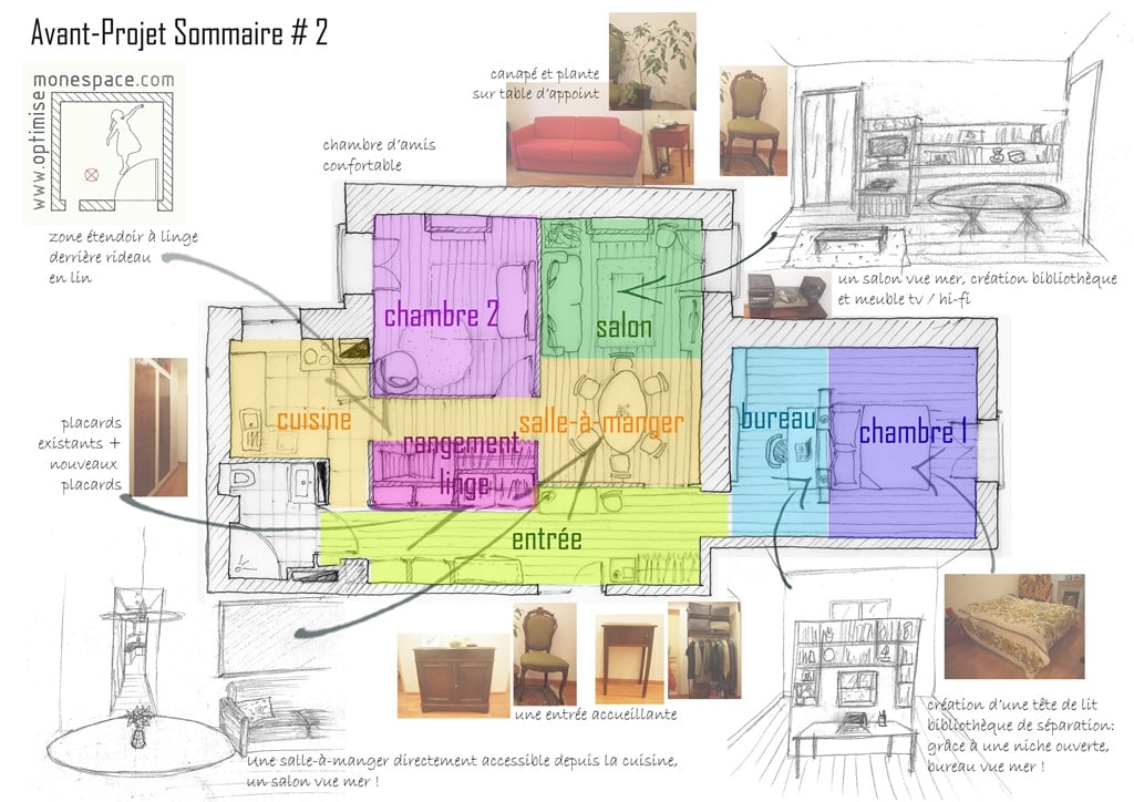 Pourquoi le salon resterait-il à sa place, puisque l’on peut aussi avoir la vue mer depuis l’actuelle “chambre 2” ?