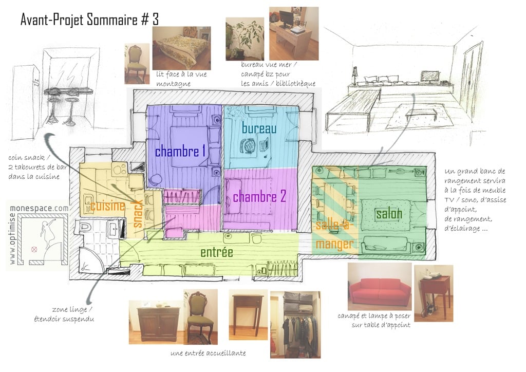– sans toucher ni à la cuisine, ni à la sdb, ni au mur porteur, et en évitant trop de travaux