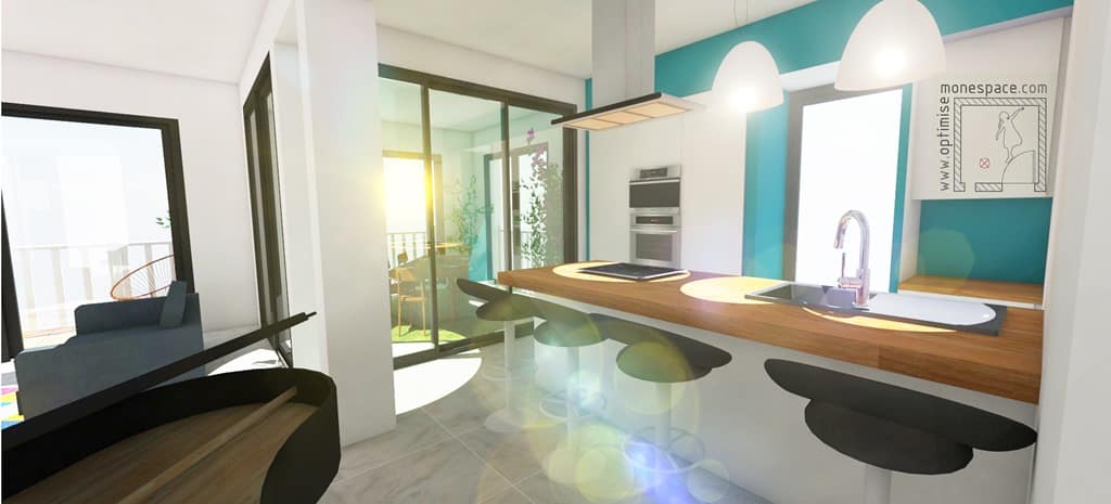 En cassant les cloisons qui séparent la cuisine du séjour, on va par ailleurs immédiatement apporter cette lumière et accentuer cette sensation d’ouverture sur l’extérieur. L’aspect immense du séjour sera également mis en valeur. Il suffira maintenant de tout miser sur cette vue mer : pour pouvoir en profiter installé le soir dans un canapé … ou le matin, accoudé à l’îlot de la cuisine.