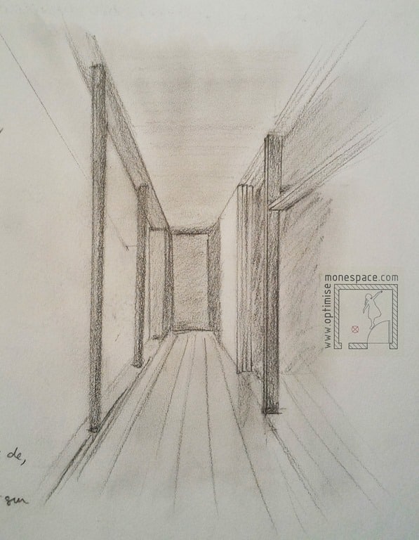 Je suis particulièrement sensible à cette pièce (l’entrée) que je vois trop souvent négligée par mes clients, prêts à rentrer directement de la rue vers un séjour avec cuisine ouverte, et ne sachant que faire, après avoir passé la porte, de leur manteau, leurs clefs, et leurs enfants accourant immédiatement sans laisser une seconde de transition.