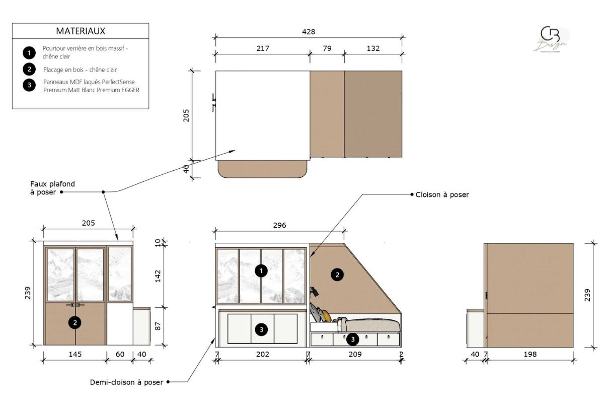Caroline a proposé une alternative : transformer le grand palier du R+1 en un vrai espace multifonction. Un bureau lumineux pour télétravailler, des rangements intégrés, un coin nuit pour les invités, un lieu de détente pour les enfants… Un palier devenu pièce à vivre, pensée pour toute la famille.