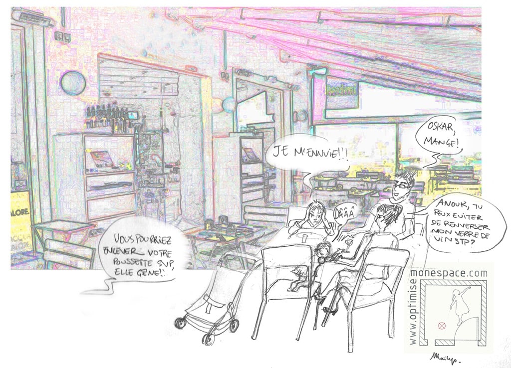 Votre enfant grandit, vous l’amenez au parc, il faut bien qu’il s’amuse, mais son plaisir n’est pas compatible avec le vôtre: on vous aura généreusement prévu quelques bancs très inconfortables, tous pris d’assaut en période de pointe. Vous rêvez d’un petit verre en terrasse, mais vous devez faire un choix: ou vous vous ennuyez au parc et vos enfants s’amusent, ou vous vous détendez au bistrot et vos enfants s’ennuient.