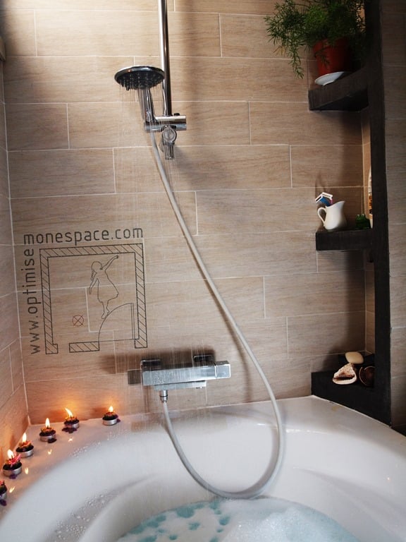 Vos enfants veulent jouer dans le bain. Mais VOUS, une fois qu’ils sont couchés, vous rêvez parfois de vous délasser dans un bon bain moussant ambiance bougies … et vous n’avez pas forcément envie d’être entourée de tous les jouets en plastique multicolores! Dans ce cas, préservez votre décor zen en prévoyant un panier à jouets que vous mettrez hors de votre vue sitôt leur bain fini!
