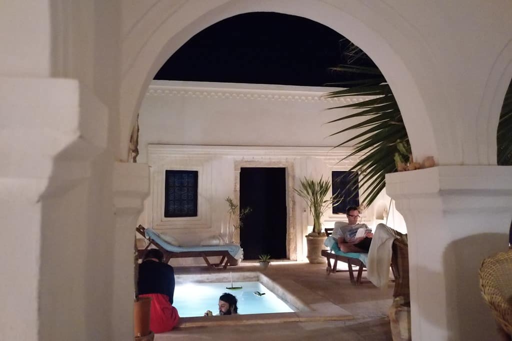 Toutes les pièces ouvrent vers cet espace central, sans autre toit que le ciel. La lumière du jour, aveuglante au-dehors, se glisse alors délicatement dans toutes les pièces autour, sans frapper de plein fouet. Ici, nulle besoin de rideaux.