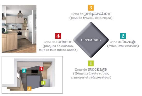 1/ Optimiser le plan de travail de la cuisine autour de ses 3 fonctions principales