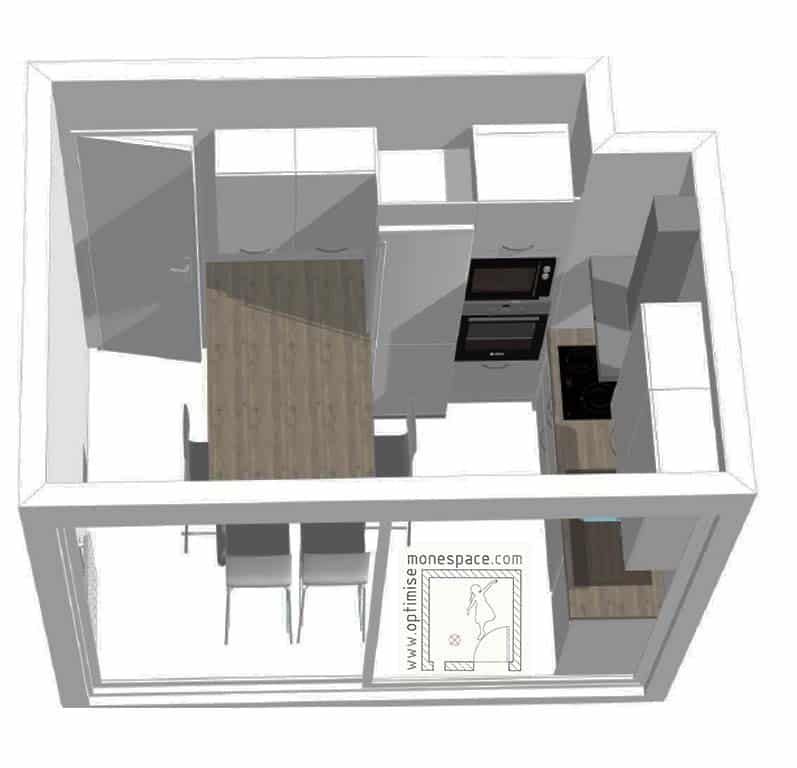 Dans un petit appartement, on ouvre généralement la cuisine sur le séjour “pour donner une sensation d’espace”, lorsque l’on ne supprime pas carrément cette pièce. On la transforme parfois en chambre en se débrouillant alors pour installer un “coin cuisine” dans le salon.