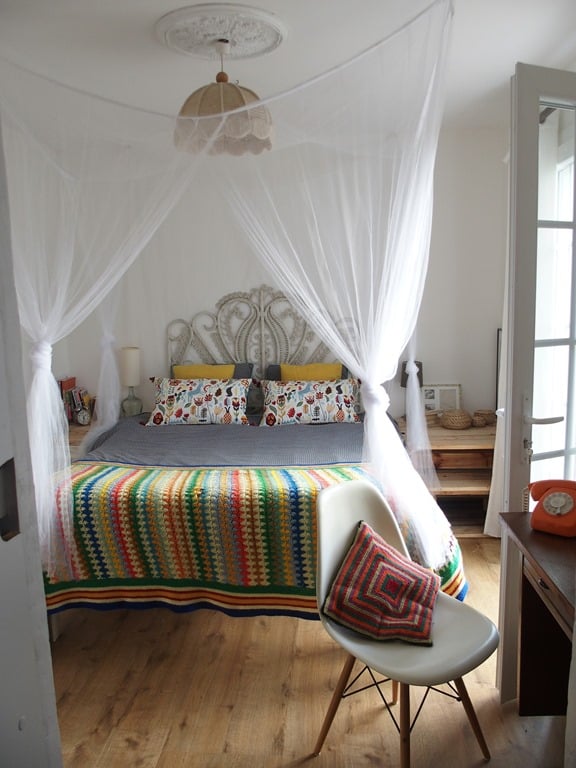 La totalité de leurs meubles a également été chinée sur ce site, dans les entrepôts Emmaüs, ou dans les vide-greniers… puis customisés par Jennifer. Leur réfrigérateur aussi, très design, a été acheté d’occasion auprès d’un particulier qui n’aimait plus sa couleur 2 ans seulement après l’avoir acheté.