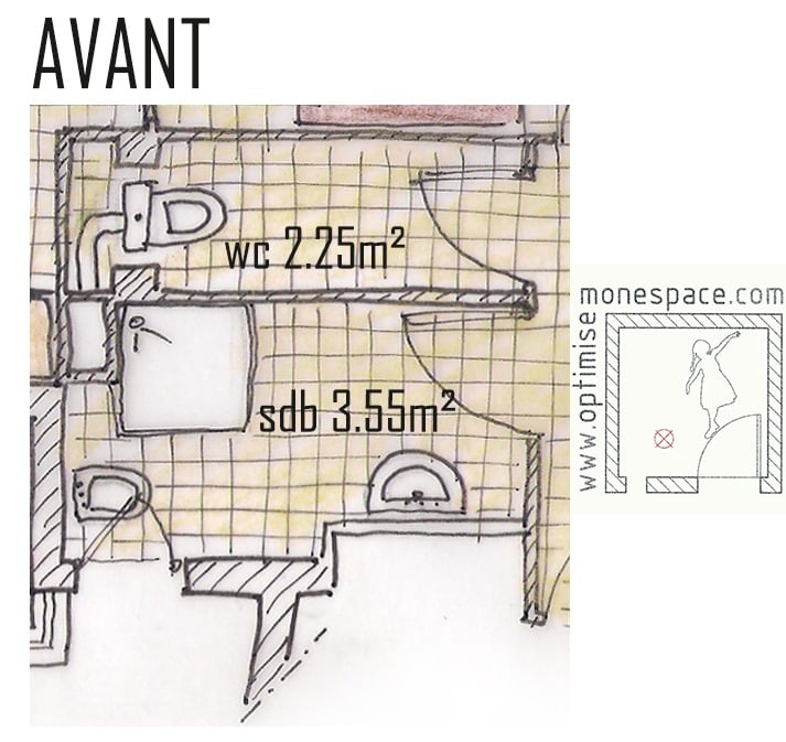 Effectivement, devoir chausser des patins à roulettes à l’entrée des toilettes pour arriver jusqu’à la cuvette… alors qu’on a du mal à se baisser pour ramasser le savon sans se cogner aux murs quand on est dans la douche… on se dit que l’architecte, au moment d’agencer cet appartement, a fait ce qu’il a pu… mais qu’il aurait pu faire mieux !