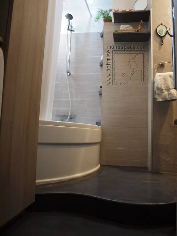 Mais comment faire pour caser une baignoire d’angle, alors que je n’avais que 90x90cm pour ma douche ?