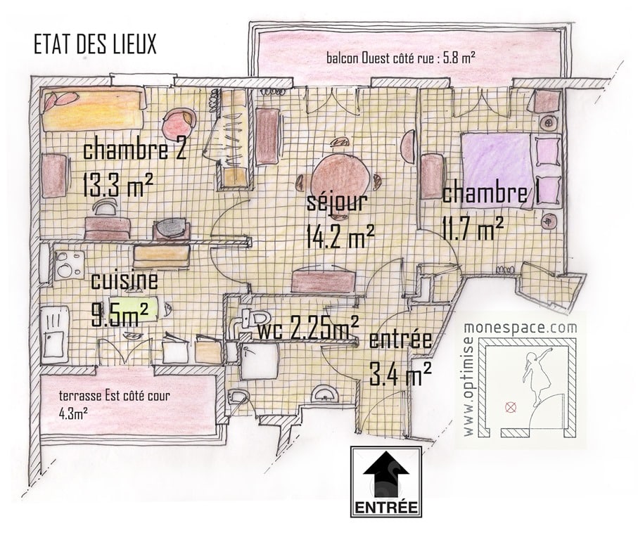 Et oui Aline ! D’ailleurs je ne me prononce jamais la première fois que je visite un appartement ! Je le mesure entièrement, et une fois le métré reporté, je suis beaucoup plus à l’aise pour le décortiquer et l’optimiser en « vue d’avion » … ou vue de mouche ! ;-)