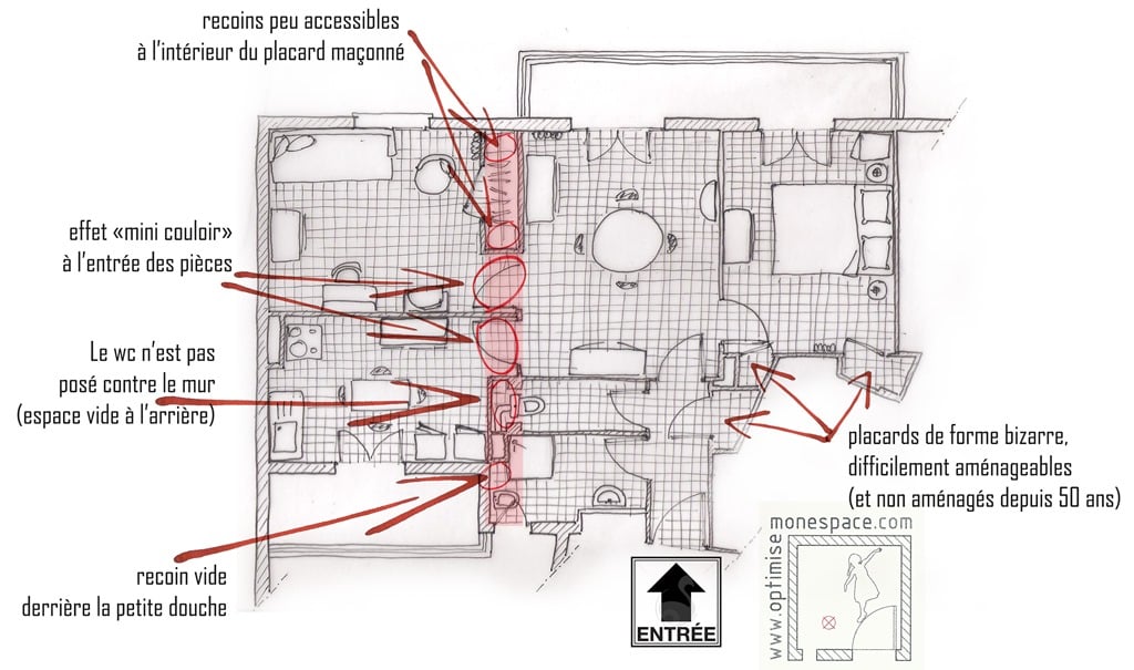 En l’occurrence, ce placard et ce wc sont les points noirs de ce plan. Et pourtant, il suffit de peu de choses !