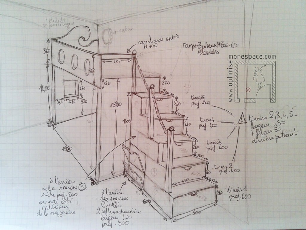 Lorsque nous avons acheté cet appartement, j’avais déjà un an d’expérience en tant que cuisiniste. J’avais alors conçu une 60aine de cuisines et sdb pour des clients tous différents, et avais pu prendre conscience de l’importance du “sur-mesure”. Cette expérience du sur-mesure, je l’avais par ailleurs déjà tentée de part nos différents appartements précédents, dans lesquels j’ai toujours conçu des mobiliers plus ou moins “casse-gueule” (parce que pas les bons matériaux…) mais toujours très réfléchis au niveau “sens pratique”: Rangement des habits, plan de travail cuisine, bureau-bibliothèque, et même, super table-à-langer gain de place. (ma plus grande fierté).