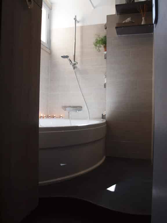– La salle-de-bain, pour un couple avec enfant, puis pour une famille avec 1 enfant et l’arrivée d’un bébé