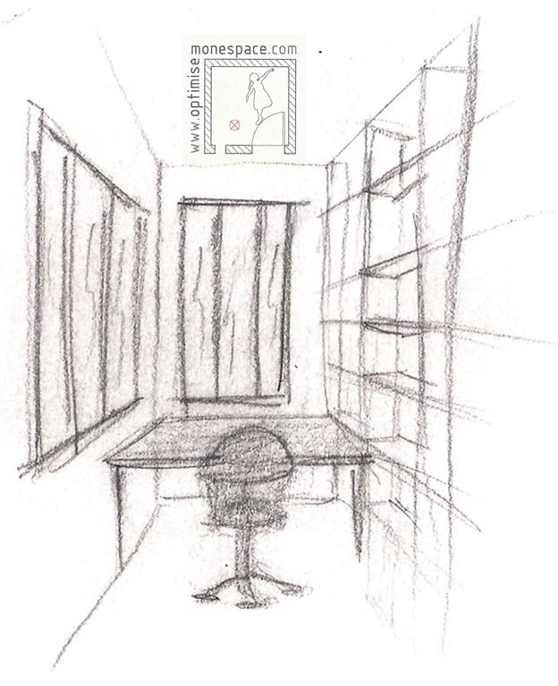Le bureau peut même être double, dans cette solution, avec une grande table et deux ordinateurs en face à face comme à la bibliothèque !