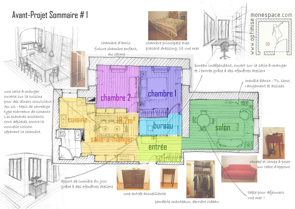 – sans toucher ni à la cuisine, ni à la sdb, ni au mur porteur, et en évitant trop de travaux