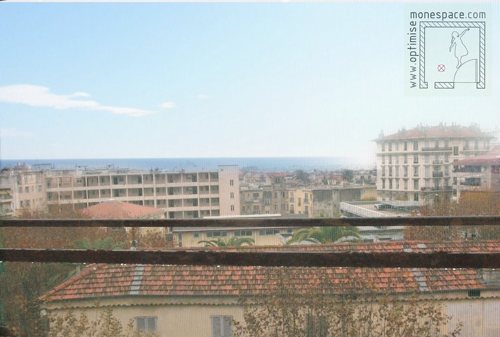 De l’autre côté, la fenêtre de la chambre 1, ne profite également qu’à la moitié de la chambre, et, non seulement elle est orientée Nord, mais elle est en plus encadrée par 2 barres d’immeubles, ce qui rétrécit son champ visuel et son apport de lumière du jour.