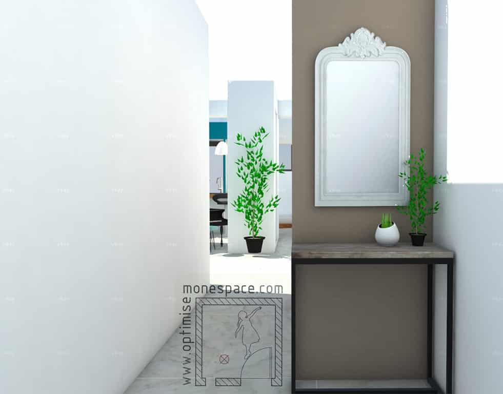 L’avantage de ce hall d’entrée immense, est sa largeur. On peut ainsi, tout-à-fait envisager de le diviser en 2 , pour offrir un coin bureau dans la seconde partie. Et hop ! On a récupéré des m2 inutilisés, pour leur offrir une vraie fonction !