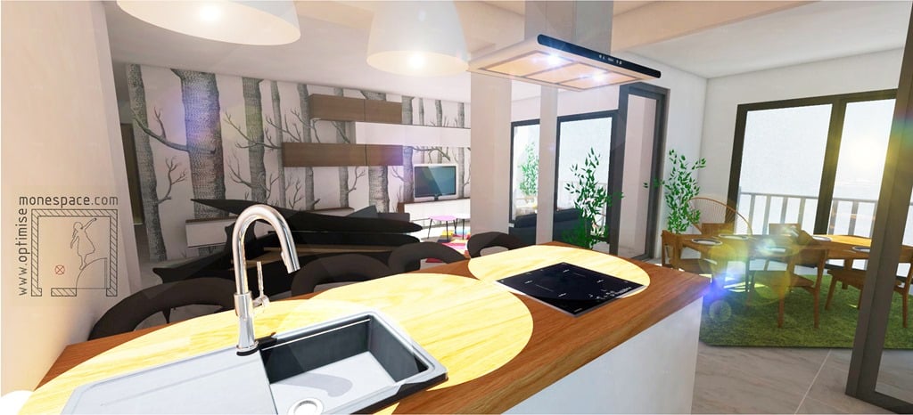 En cassant les cloisons qui séparent la cuisine du séjour, on va par ailleurs immédiatement apporter cette lumière et accentuer cette sensation d’ouverture sur l’extérieur. L’aspect immense du séjour sera également mis en valeur. Il suffira maintenant de tout miser sur cette vue mer : pour pouvoir en profiter installé le soir dans un canapé … ou le matin, accoudé à l’îlot de la cuisine.