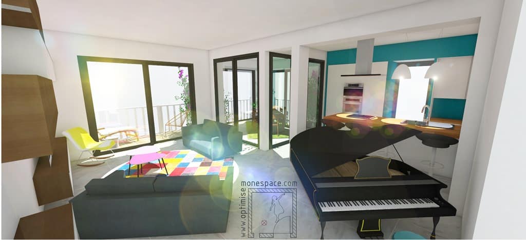 Alors comment se re-créer une sensation de terrasse, et même aller plus loin, en transformant ce défaut … en avantage?